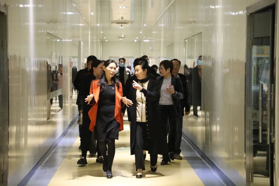 閆董事長陪同朱麗珍主席一行觀看企業宣傳片,并通過參觀走廊參觀三、四、五號生產線,向各位領導和嘉賓系統介紹銀金達發展歷程、生產設備、創新成果等,朱主席和各位女企業家對銀金達優美的廠區環境、現代化的生產設備、優秀的企業文化、卓越的創新成果表示熱誠贊許。