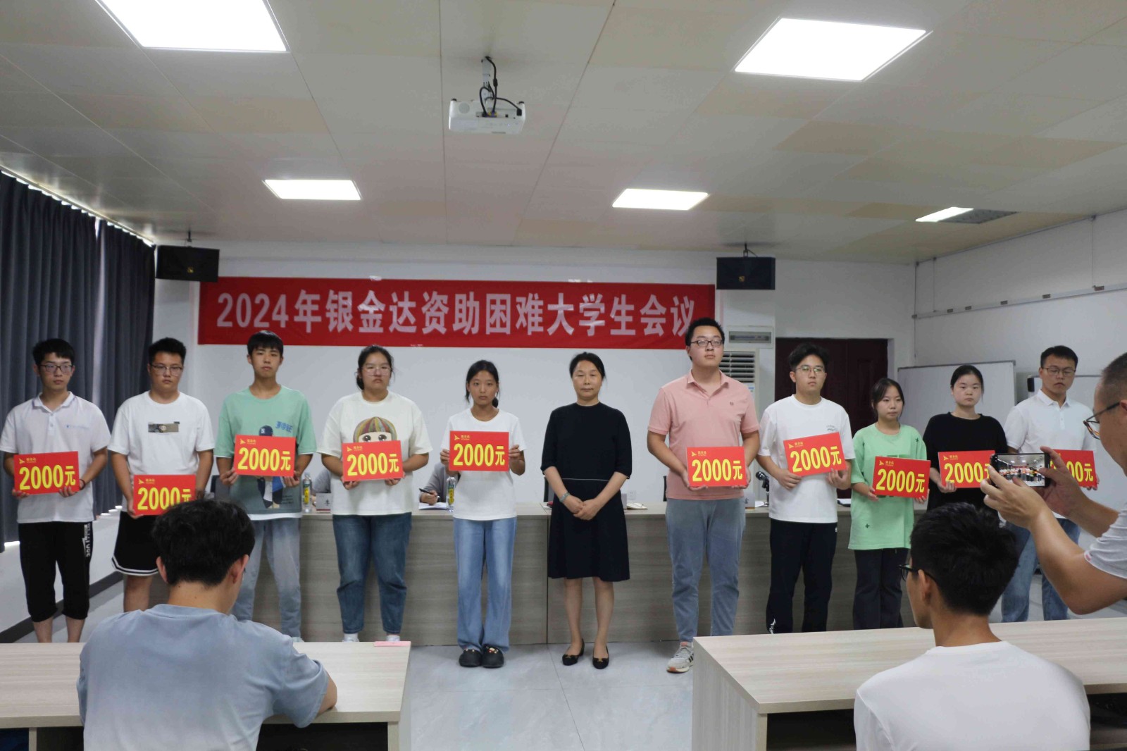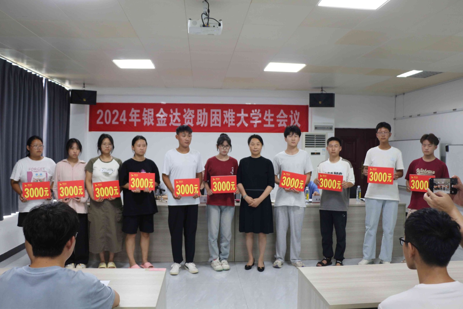 銀金達(dá)集團(tuán)負(fù)責(zé)同志對本次資助活動(dòng)開展情況向與會(huì)人員進(jìn)行了介紹。銀金達(dá)始終把履行社會(huì)責(zé)任作為企業(yè)的光榮使命,自2006年起,連續(xù)19年資助困難大學(xué)生,今年發(fā)放資助金18.3萬元,資助學(xué)生68名。6月初即發(fā)布資助困難大學(xué)生公告,7月中旬,集團(tuán)黨辦通過各鄉(xiāng)鎮(zhèn)基層黨組織群、駐村工作群及民政局等,共收到困難大學(xué)生19人,孤兒及事實(shí)孤兒大學(xué)生10人,通過內(nèi)部調(diào)查摸底,收到職工子女大學(xué)生21人,通過幫扶村,收到幫扶村大學(xué)生17人,然后對各種身份大學(xué)生進(jìn)行核查驗(yàn)證。共收到需要資助的大學(xué)生68人,對考入北京大學(xué)的大學(xué)生獎(jiǎng)勵(lì)1人。2024年比上年增加資助金2萬元。